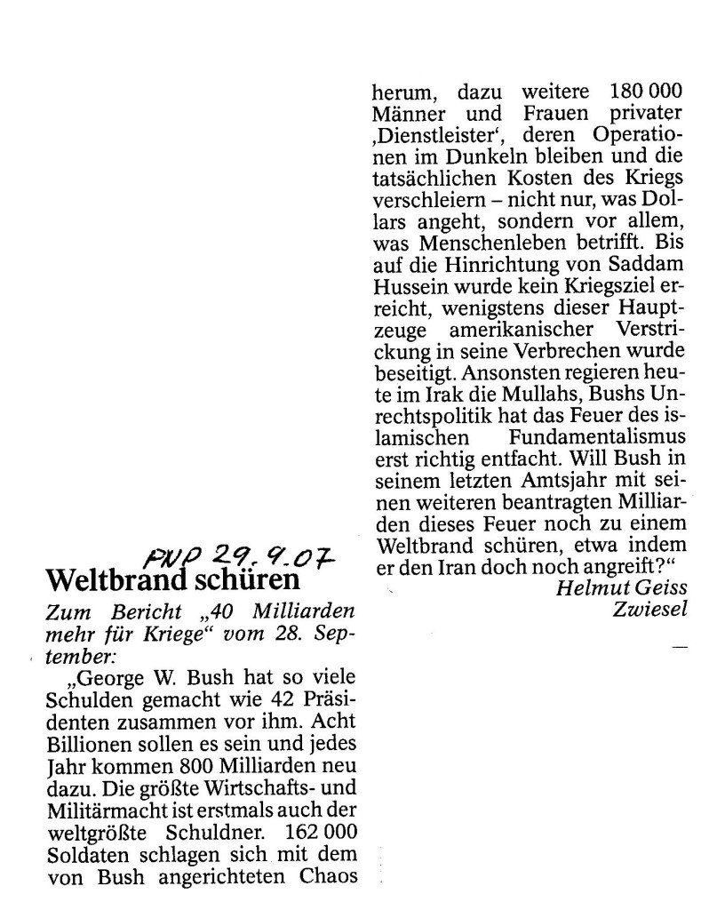 Helmut Josef Geiss - Original-Leserbriefe von 2007