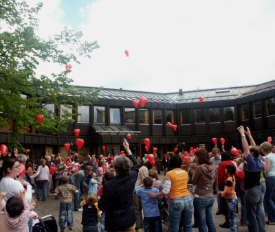 Schweinhütt (jf). In einer kurzen, aber anrührenden Gedenkfeier haben Mitarbeiter und Schüler der Christophorusschule gestern von Ruth Braumandl Abschied genommen. Die Mitbegründerin der Lebenshilfe-Kreisvereinigung war am 5. Mai in Regensburg gestorben. In der von Anneliese Schönberger organisierten Feier erinnerte der langjährige Schulleiter Dieter Starke die Kinder daran, wie viel man der Verstorbenen zu verdanken habe. "Ruth Braumandl hat dafür gesorgt, dass behinderte Menschen im Landkreis heute gut versorgt sind - von der Frühförderstelle über die Christophorusschule bis hin zu den Regener Werkstätten.“ In Fürbitten-Form wussten dann Betreuer und Schüler noch einiges zu ergänzen, wofür man Dank sagen kann. Etwa das mittlerweile traditionelle Lebenshilfe-Fest, die "Rockaroas“ oder den Schulgarten. Höhepunkt war ein letzter Gruß, den die Kinder mit Begeisterung zu Ruth Braumandl in den Himmel steigen ließen - in Form von roten, herzförmigen Ballons. Foto: Fuchs
