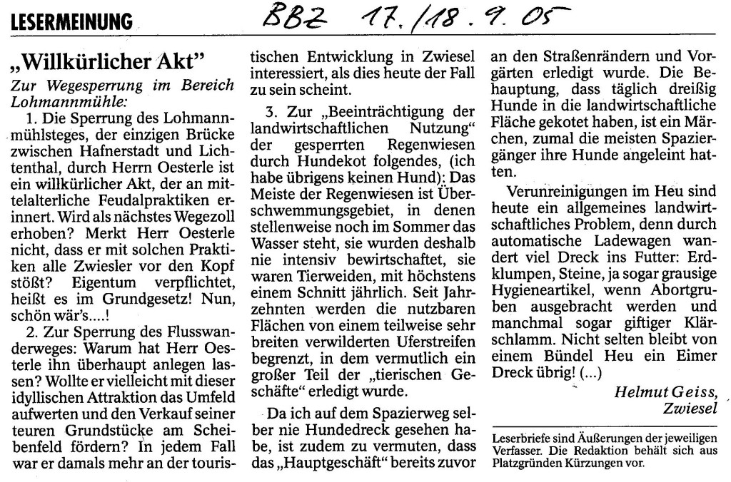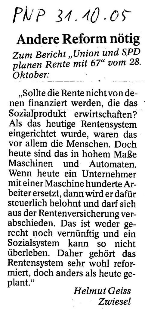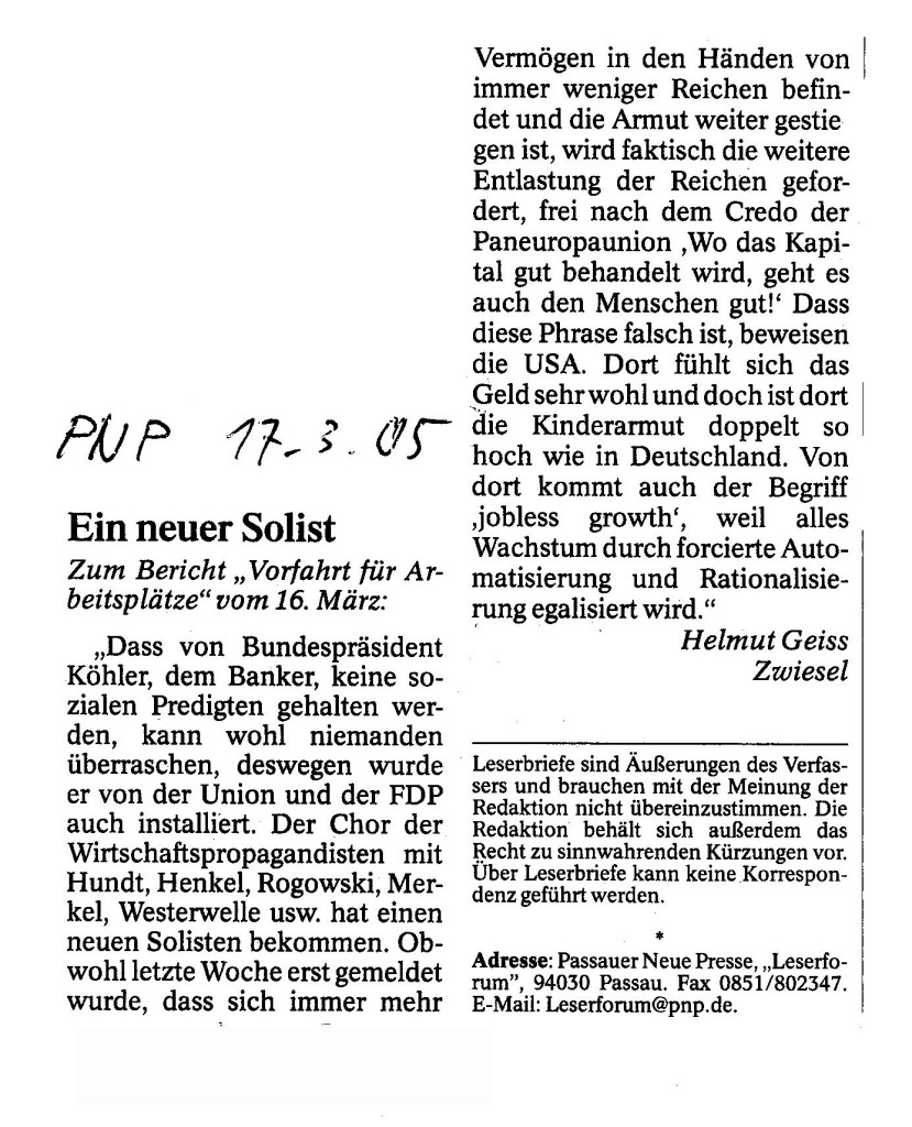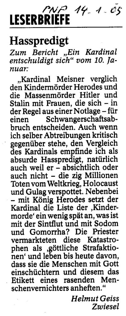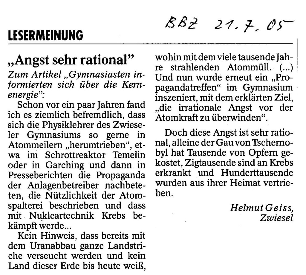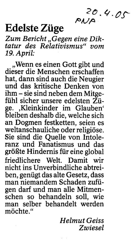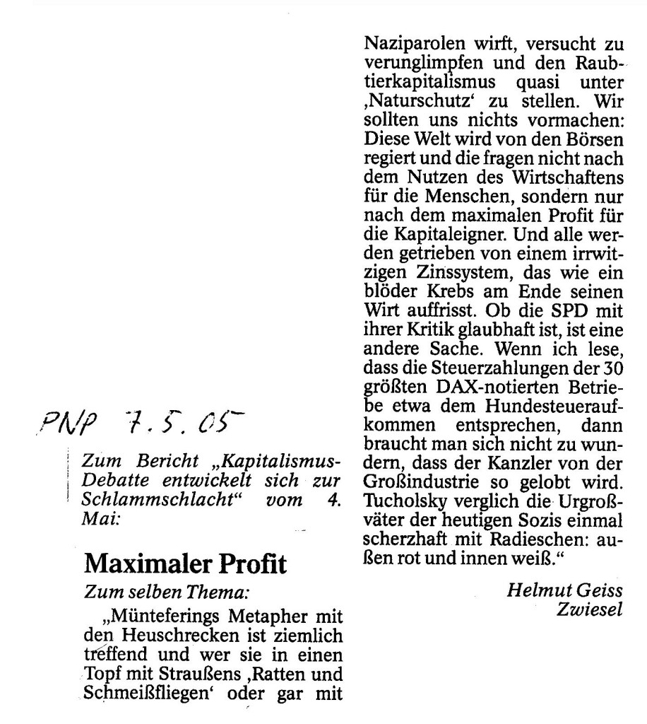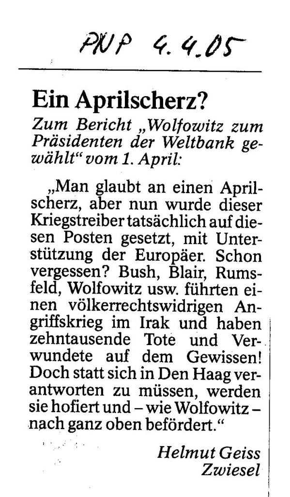 Helmut Josef Geiss - Original-Leserbriefe von 2005