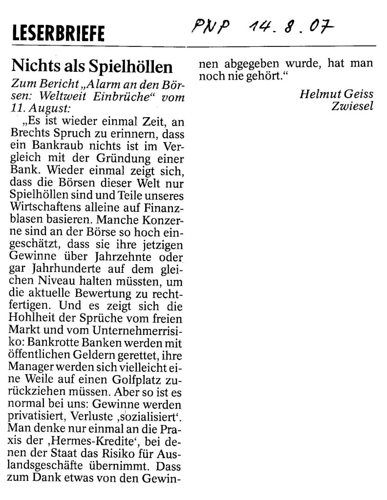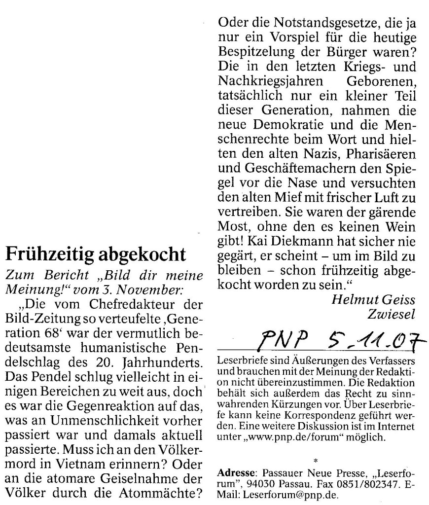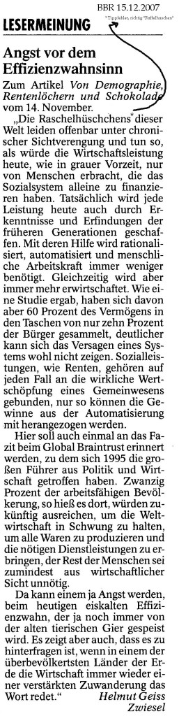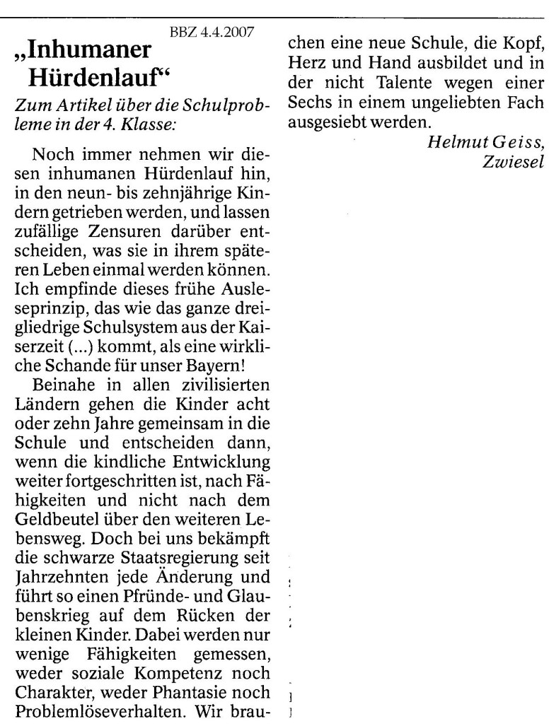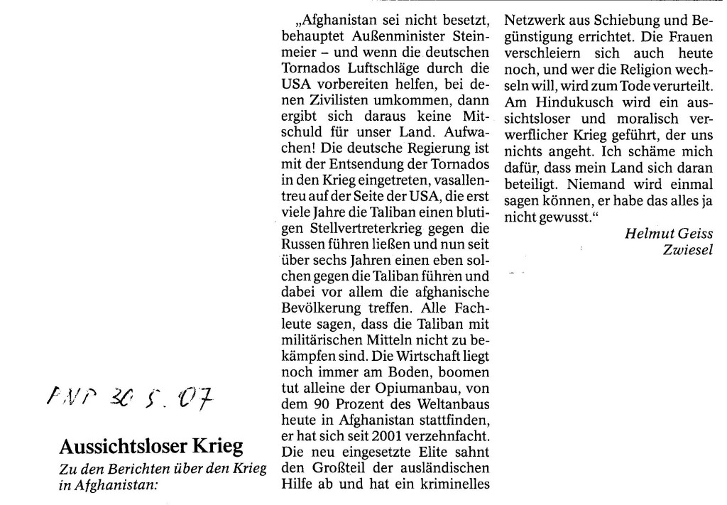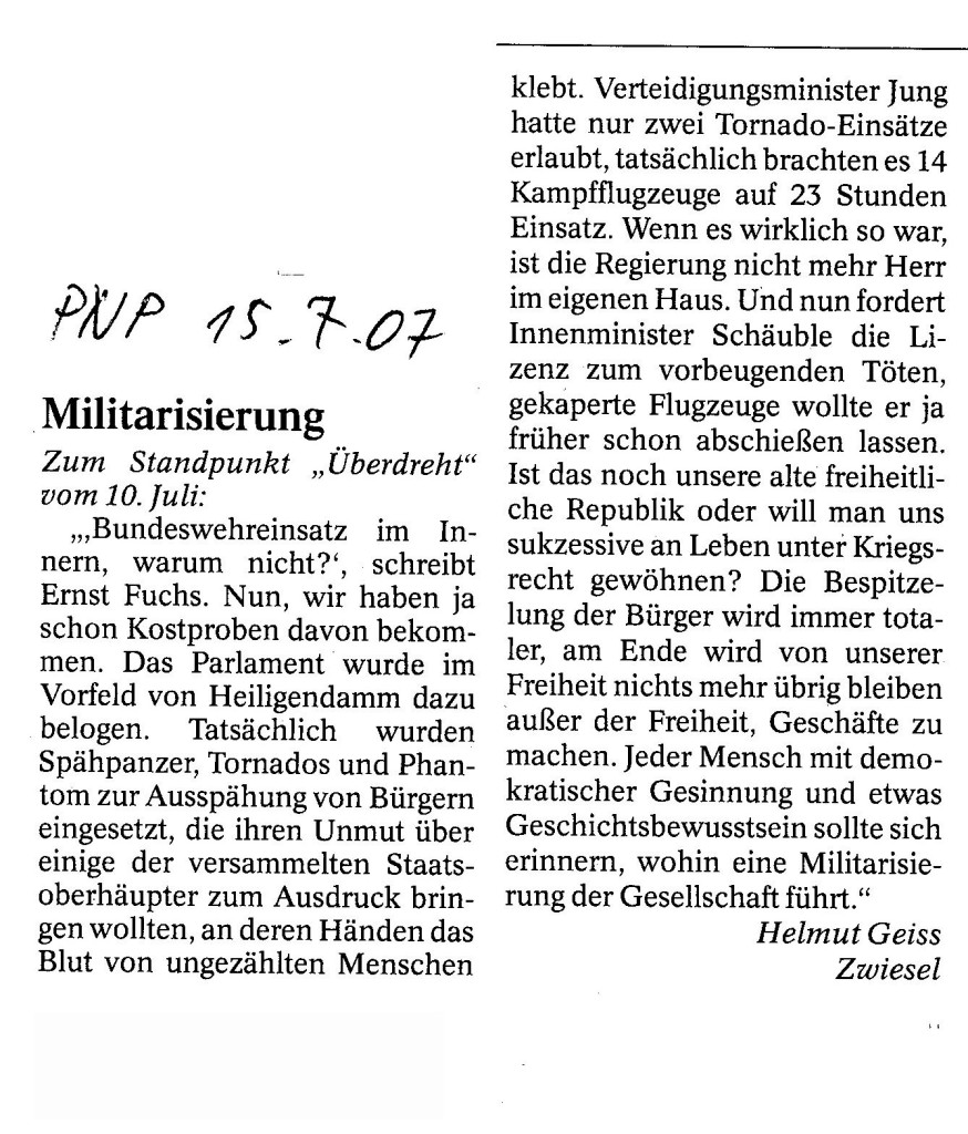 Helmut Josef Geiss - Original-Leserbriefe von 2007