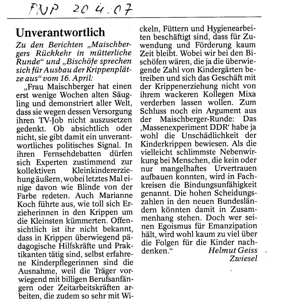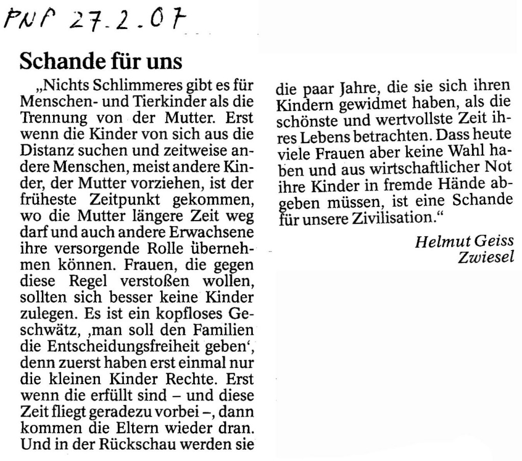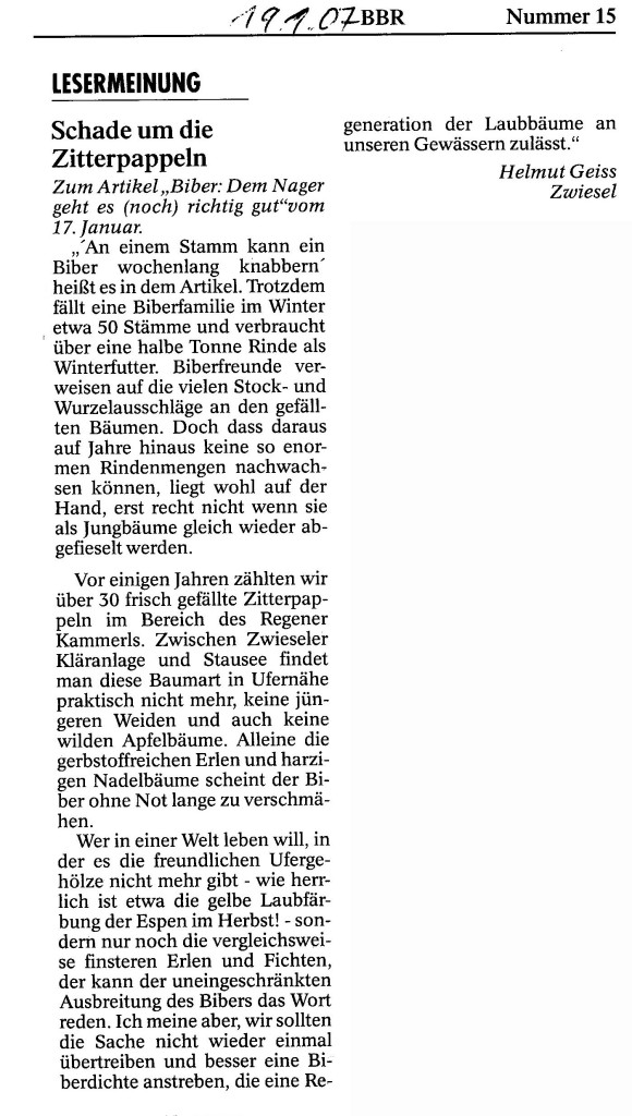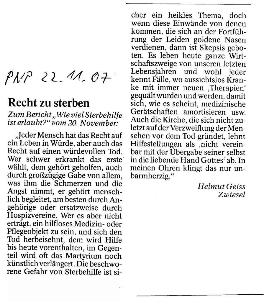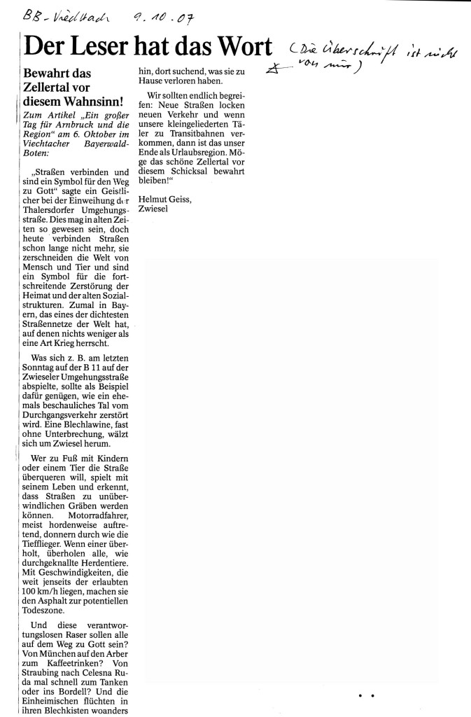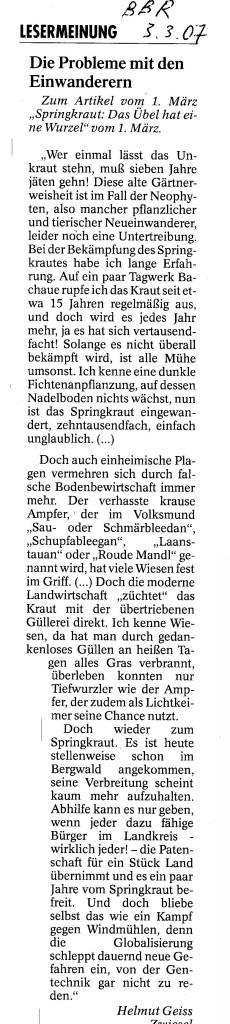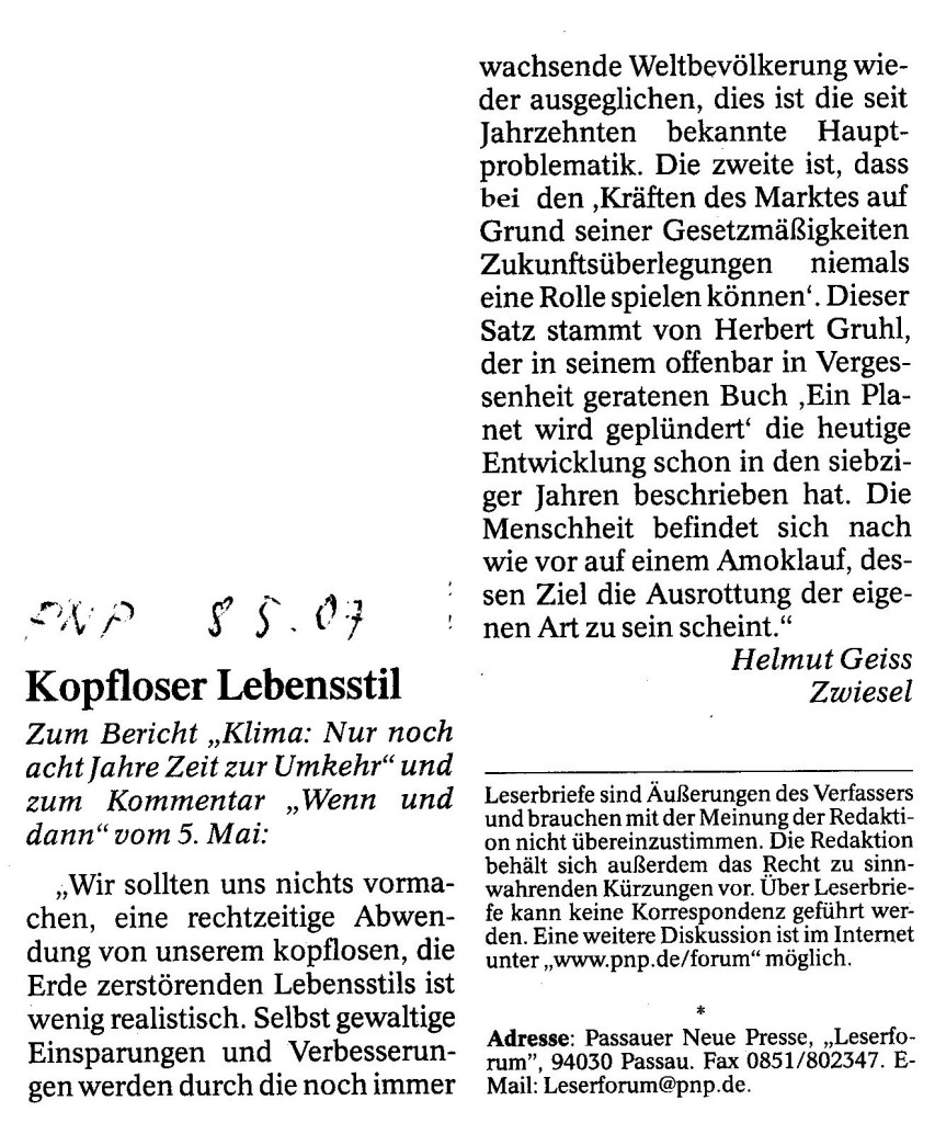 Helmut Josef Geiss - Original-Leserbriefe von 2007