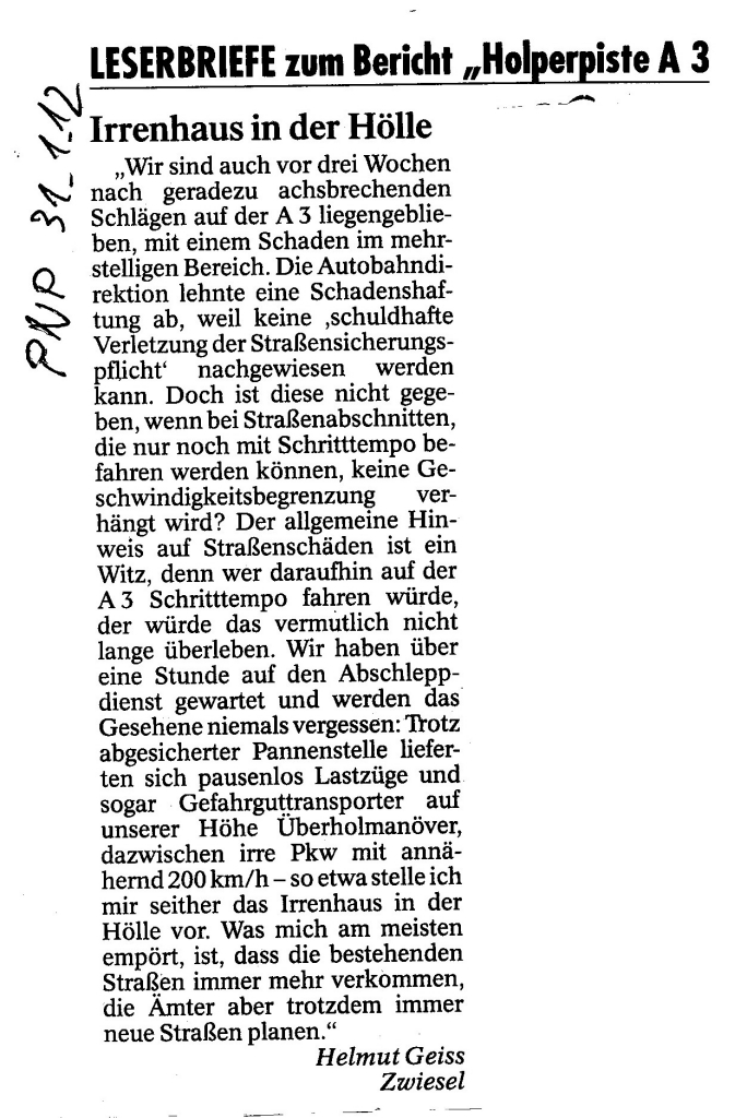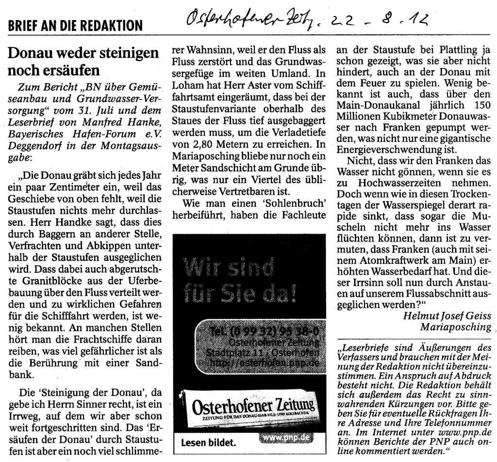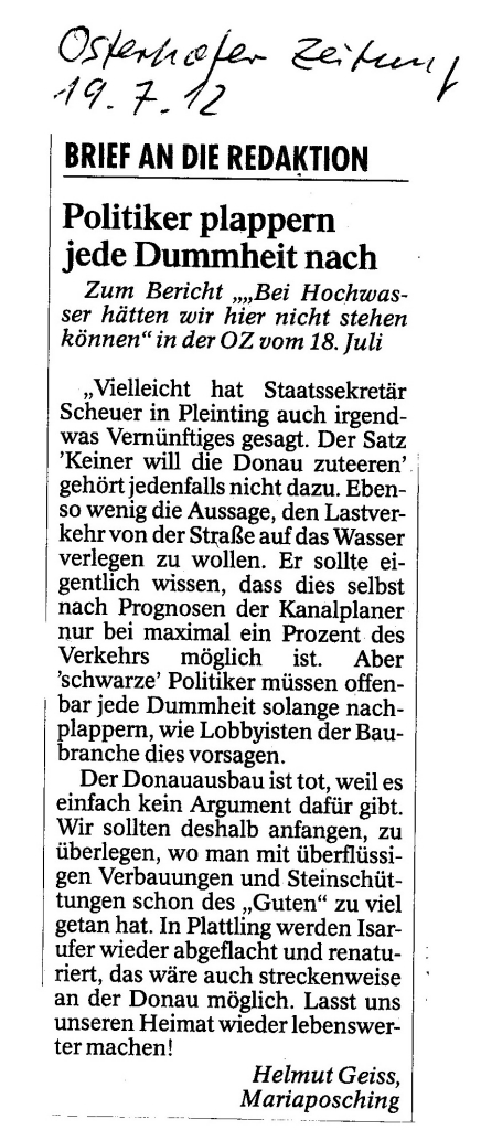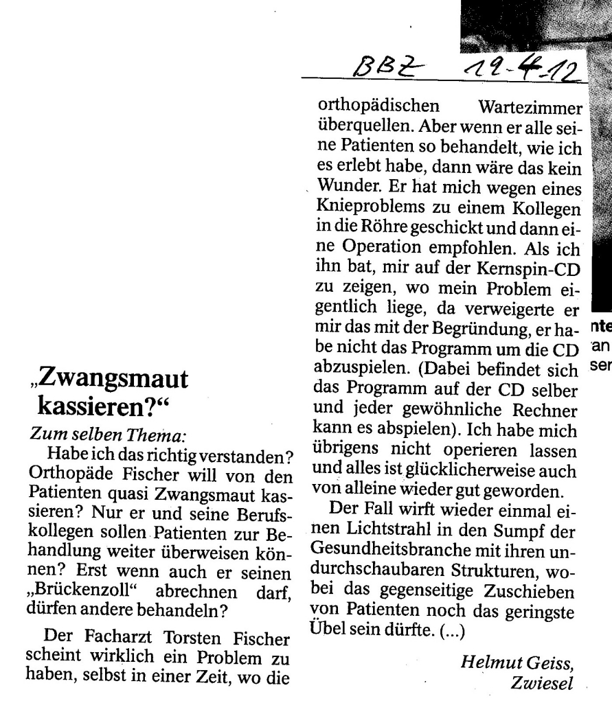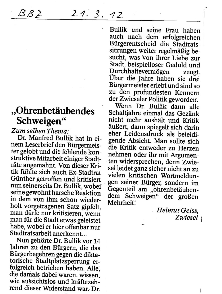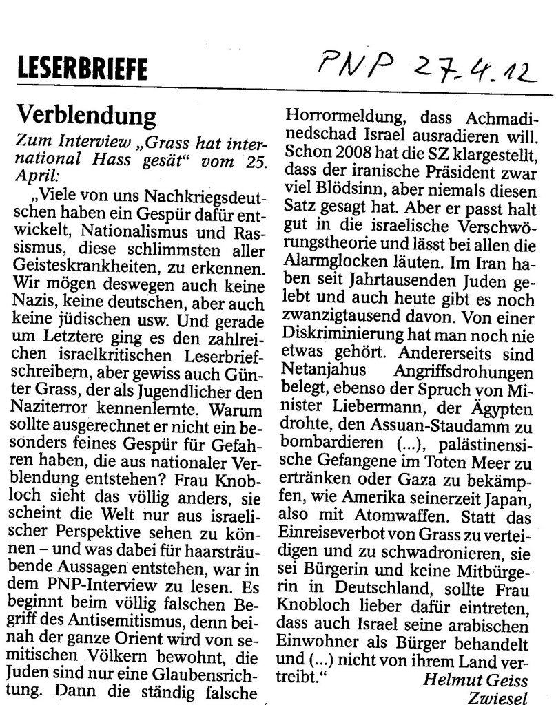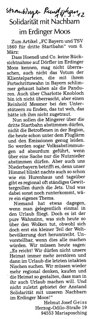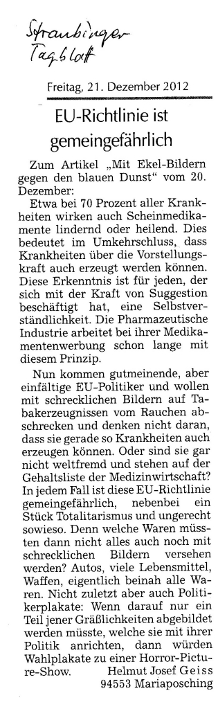 Helmut Josef Geiss - Original-Leserbriefe von 2012