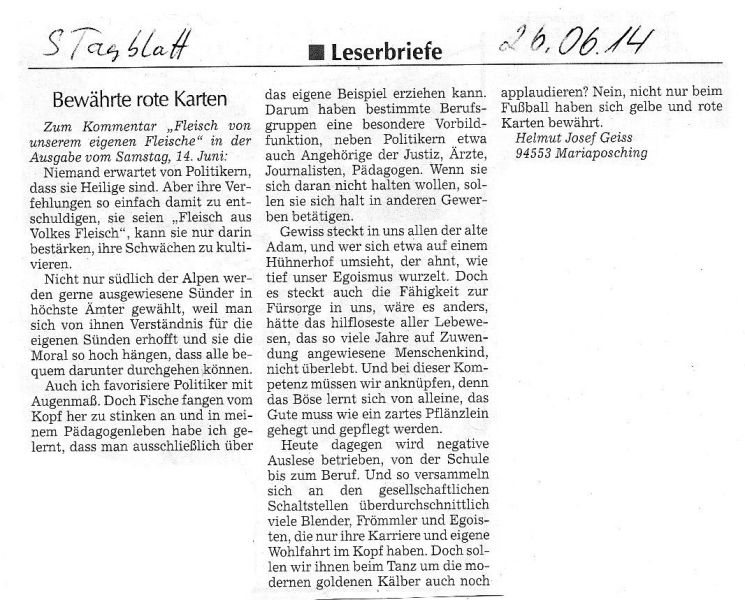 Helmut Josef Geiss Leserbriefe 2014 — 2014-06-26.jpg