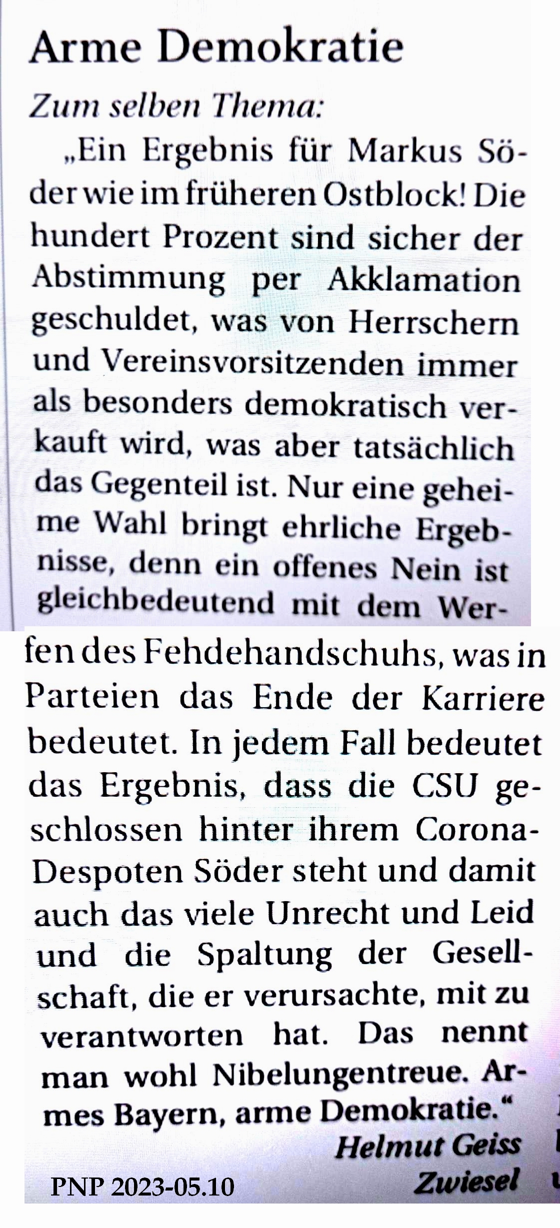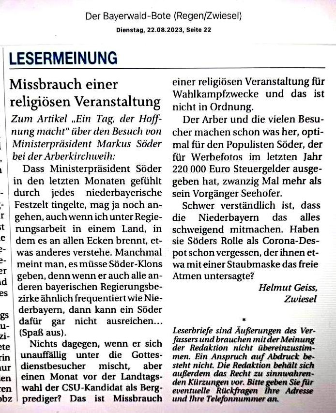 Leserbriefe 2023 - Geiss Haejm